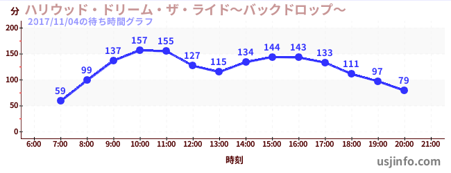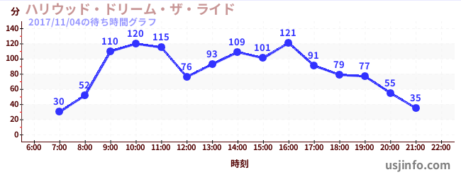 • ハリウッド・ドリーム・ザ・ライド〜バックドロップ〜$B$N(B2017年11月04日の待ち時間