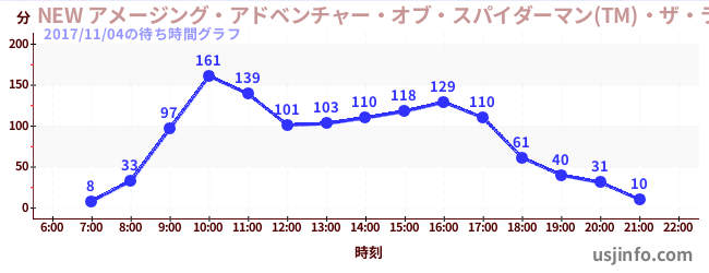• NEW アメージング・アドベンチャー・オブ・スパイダーマン(TM)・ザ・ライド 4K3D$B$N(B2017年11月04日の待ち時間