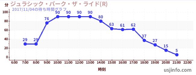 • ジュラシック・パーク・ザ・ライド(R)$B$N(B2017年11月04日の待ち時間
