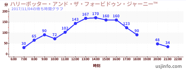 • ハリーポッター・アンド・ザ・フォービドゥン・ジャーニー™$B$N(B2017年11月04日の待ち時間