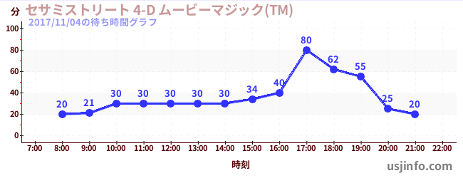 • セサミストリート 4-D ムービーマジック(TM)$B$N(B2017年11月04日の待ち時間