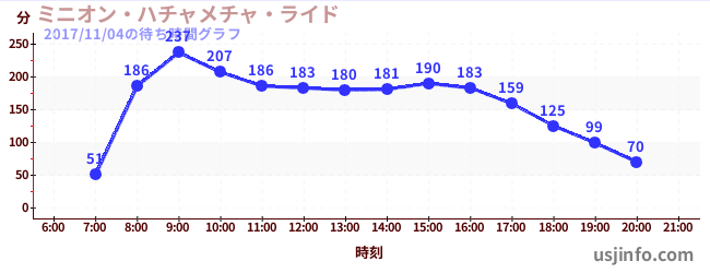 • ミニオン・ハチャメチャ・ライド$B$N(B2017年11月04日の待ち時間
