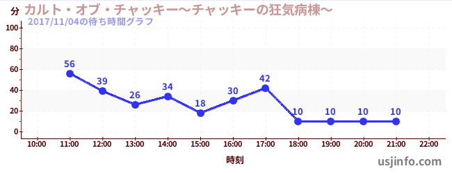 • カルト・オブ・チャッキー~チャッキーの狂気病棟~$B$N(B2017年11月04日の待ち時間