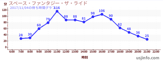 • スペース・ファンタジー・ザ・ライド$B$N(B2017年11月04日の待ち時間
