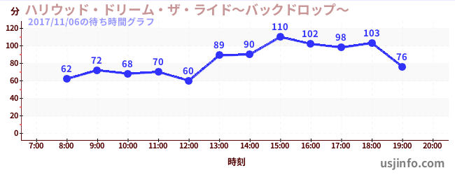 • ハリウッド・ドリーム・ザ・ライド〜バックドロップ〜$B$N(B2017年11月06日の待ち時間