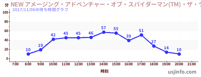 • NEW アメージング・アドベンチャー・オブ・スパイダーマン(TM)・ザ・ライド 4K3D$B$N(B2017年11月06日の待ち時間