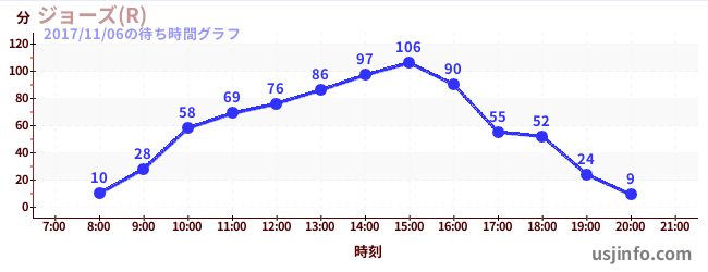 • ジョーズ(R)$B$N(B2017年11月06日の待ち時間
