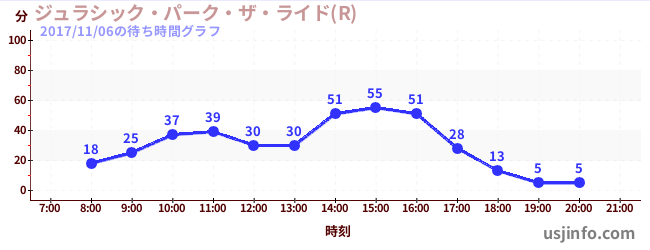 • ジュラシック・パーク・ザ・ライド(R)$B$N(B2017年11月06日の待ち時間