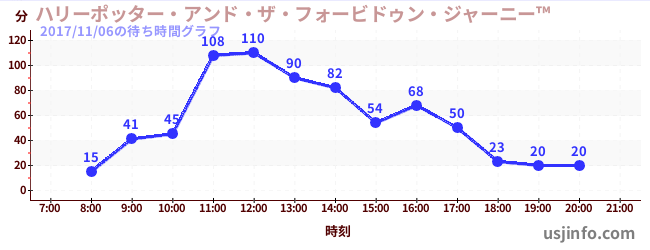 • ハリーポッター・アンド・ザ・フォービドゥン・ジャーニー™$B$N(B2017年11月06日の待ち時間
