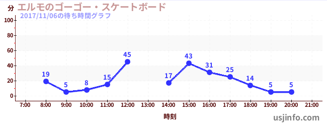 • エルモのゴーゴー・スケートボード$B$N(B2017年11月06日の待ち時間