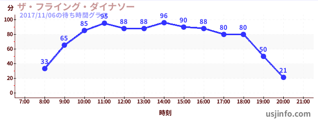 • ザ・フライング・ダイナソー$B$N(B2017年11月06日の待ち時間
