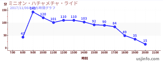 • ミニオン・ハチャメチャ・ライド$B$N(B2017年11月06日の待ち時間