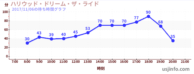 • ハリウッド・ドリーム・ザ・ライド$B$N(B2017年11月06日の待ち時間