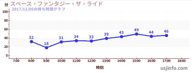 • スペース・ファンタジー・ザ・ライド$B$N(B2017年11月06日の待ち時間