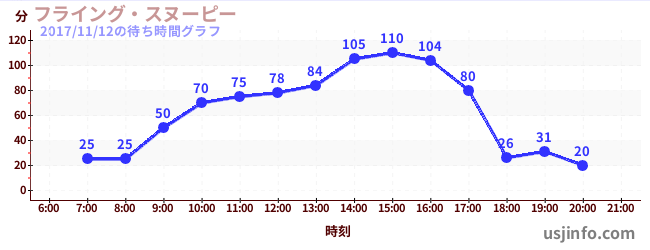 • フライング・スヌーピー$B$N(B2017年11月12日の待ち時間