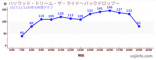 • ハリウッド・ドリーム・ザ・ライド〜バックドロップ〜$B$N(B2017年11月12日の待ち時間