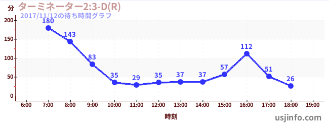 • ターミネーター2:3-D(R)$B$N(B2017年11月12日の待ち時間