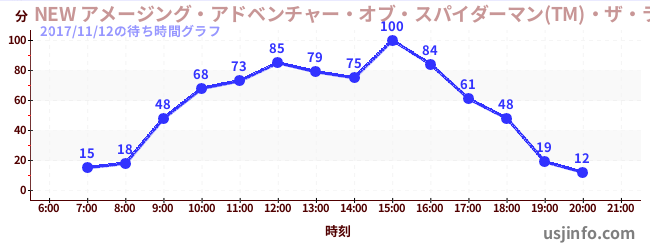 • NEW アメージング・アドベンチャー・オブ・スパイダーマン(TM)・ザ・ライド 4K3D$B$N(B2017年11月12日の待ち時間