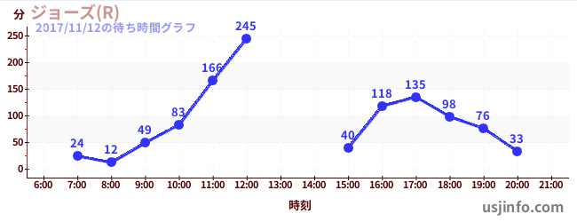 • ジョーズ(R)$B$N(B2017年11月12日の待ち時間