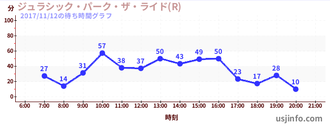 • ジュラシック・パーク・ザ・ライド(R)$B$N(B2017年11月12日の待ち時間