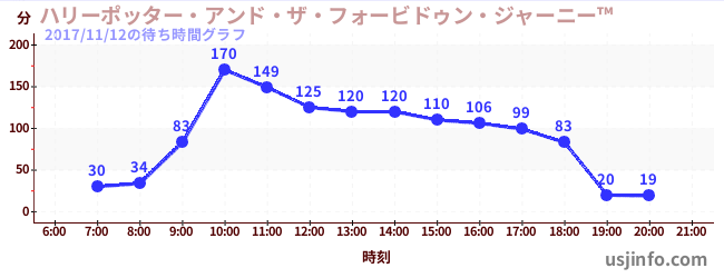 • ハリーポッター・アンド・ザ・フォービドゥン・ジャーニー™$B$N(B2017年11月12日の待ち時間