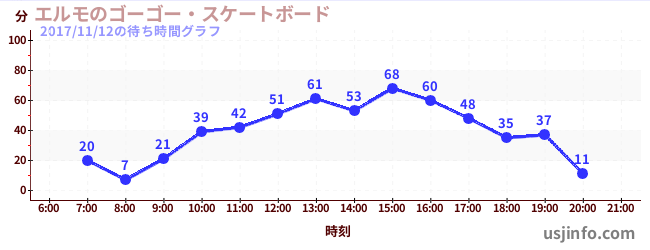 • エルモのゴーゴー・スケートボード$B$N(B2017年11月12日の待ち時間