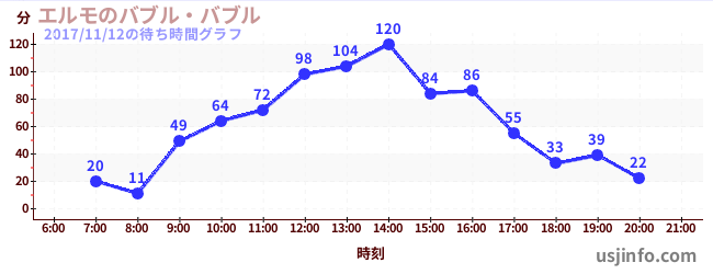 • エルモのバブル・バブル$B$N(B2017年11月12日の待ち時間
