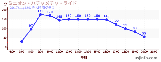 • ミニオン・ハチャメチャ・ライド$B$N(B2017年11月12日の待ち時間