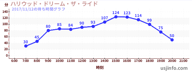 • ハリウッド・ドリーム・ザ・ライド$B$N(B2017年11月12日の待ち時間
