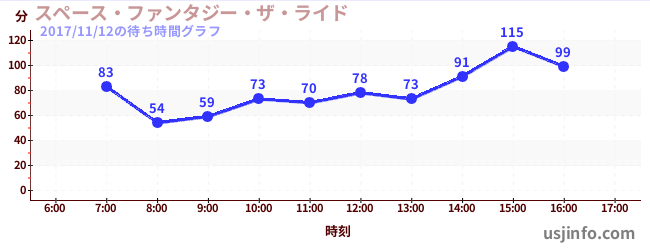• スペース・ファンタジー・ザ・ライド$B$N(B2017年11月12日の待ち時間