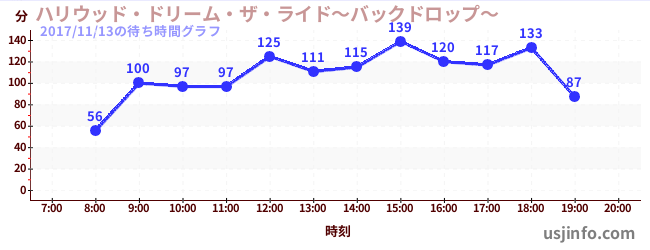 • ハリウッド・ドリーム・ザ・ライド〜バックドロップ〜$B$N(B2017年11月13日の待ち時間