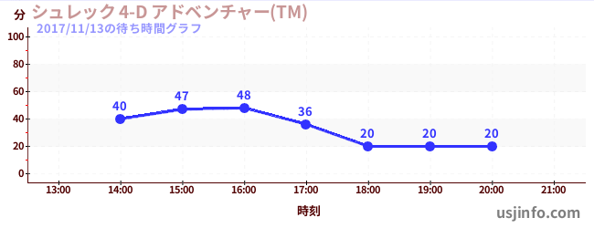• シュレック 4-D アドベンチャー(TM)$B$N(B2017年11月13日の待ち時間
