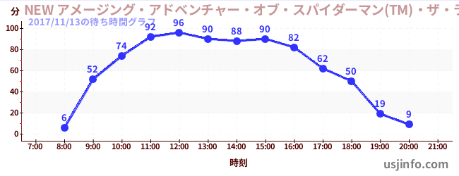 • NEW アメージング・アドベンチャー・オブ・スパイダーマン(TM)・ザ・ライド 4K3D$B$N(B2017年11月13日の待ち時間