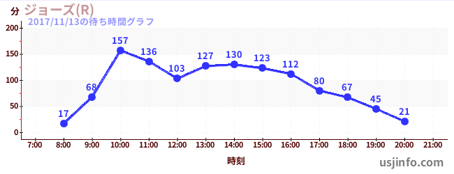 • ジョーズ(R)$B$N(B2017年11月13日の待ち時間