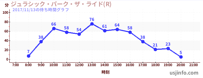 • ジュラシック・パーク・ザ・ライド(R)$B$N(B2017年11月13日の待ち時間