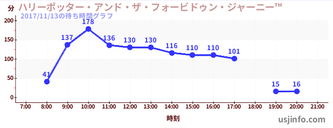 • ハリーポッター・アンド・ザ・フォービドゥン・ジャーニー™$B$N(B2017年11月13日の待ち時間