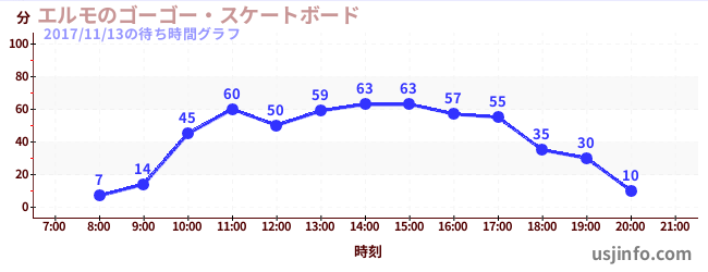 • エルモのゴーゴー・スケートボード$B$N(B2017年11月13日の待ち時間