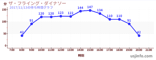 • ザ・フライング・ダイナソー$B$N(B2017年11月13日の待ち時間