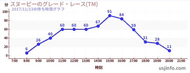 • スヌーピーのグレード・レース(TM)$B$N(B2017年11月13日の待ち時間