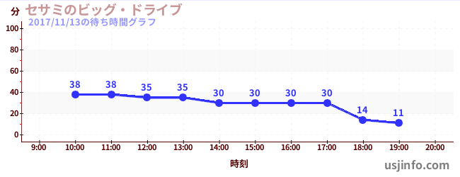 • セサミのビッグ・ドライブ$B$N(B2017年11月13日の待ち時間