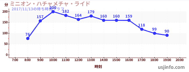 • ミニオン・ハチャメチャ・ライド$B$N(B2017年11月13日の待ち時間