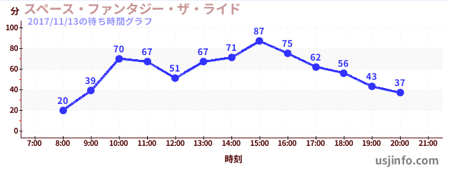 • スペース・ファンタジー・ザ・ライド$B$N(B2017年11月13日の待ち時間