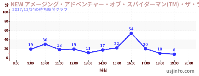 • NEW アメージング・アドベンチャー・オブ・スパイダーマン(TM)・ザ・ライド 4K3D$B$N(B2017年11月14日の待ち時間