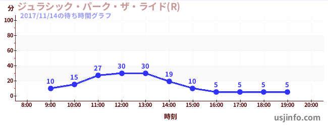• ジュラシック・パーク・ザ・ライド(R)$B$N(B2017年11月14日の待ち時間