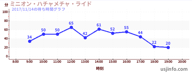 • ミニオン・ハチャメチャ・ライド$B$N(B2017年11月14日の待ち時間