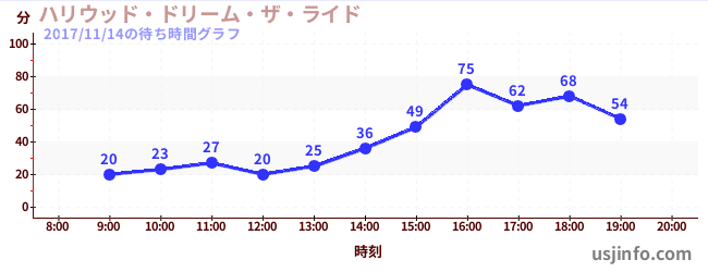 • ハリウッド・ドリーム・ザ・ライド$B$N(B2017年11月14日の待ち時間