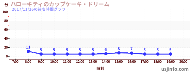 • ハローキティのカップケーキ・ドリーム$B$N(B2017年11月16日の待ち時間