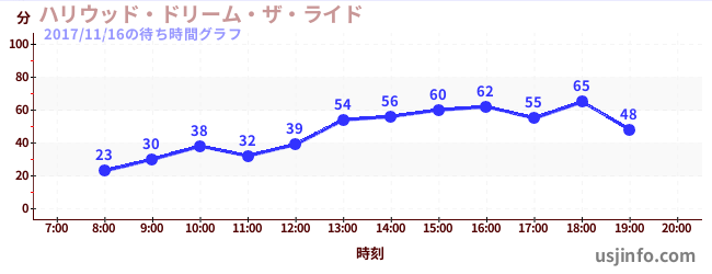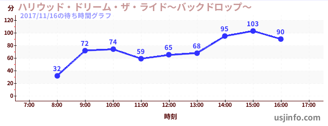 • ハリウッド・ドリーム・ザ・ライド$B$N(B2017年11月16日の待ち時間