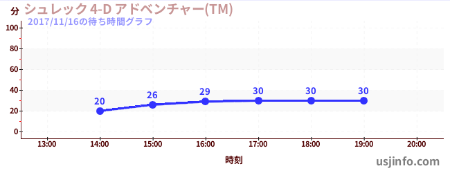 • シュレック 4-D アドベンチャー(TM)$B$N(B2017年11月16日の待ち時間