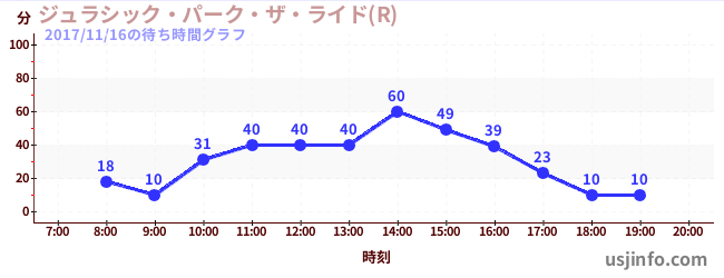 • ジュラシック・パーク・ザ・ライド(R)$B$N(B2017年11月16日の待ち時間